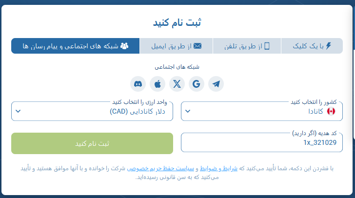 مراحل ثبت نام در وان ایکس بت از طریق شبکه های اجتماعی تلگرام