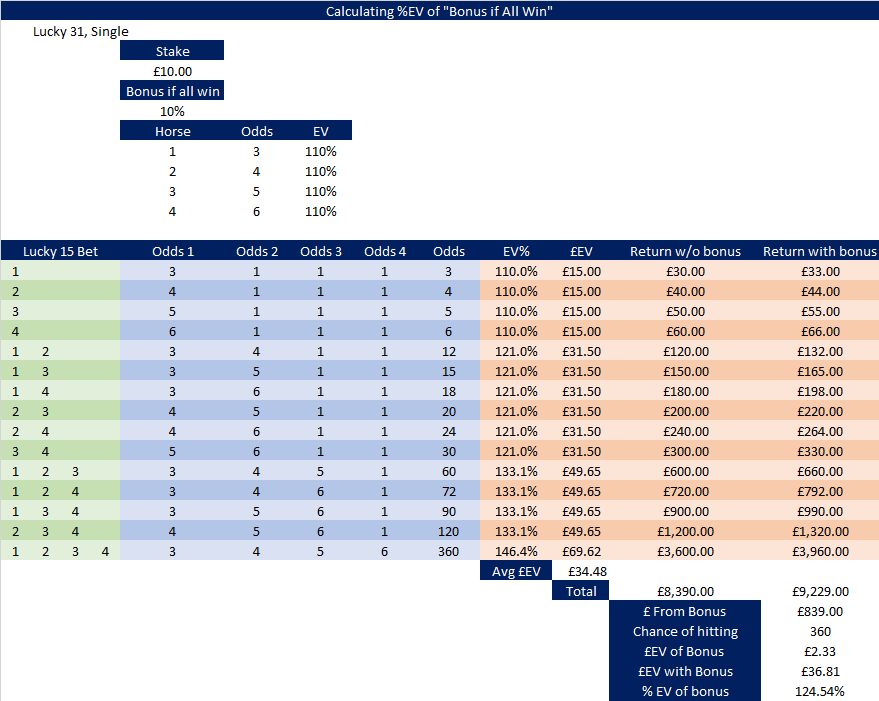 در این حالت طبق عکس مشخص شده ما 46.83 یورو میبریم و در کل 20 یورو برروی کل بازی ها قرار داده ایم.